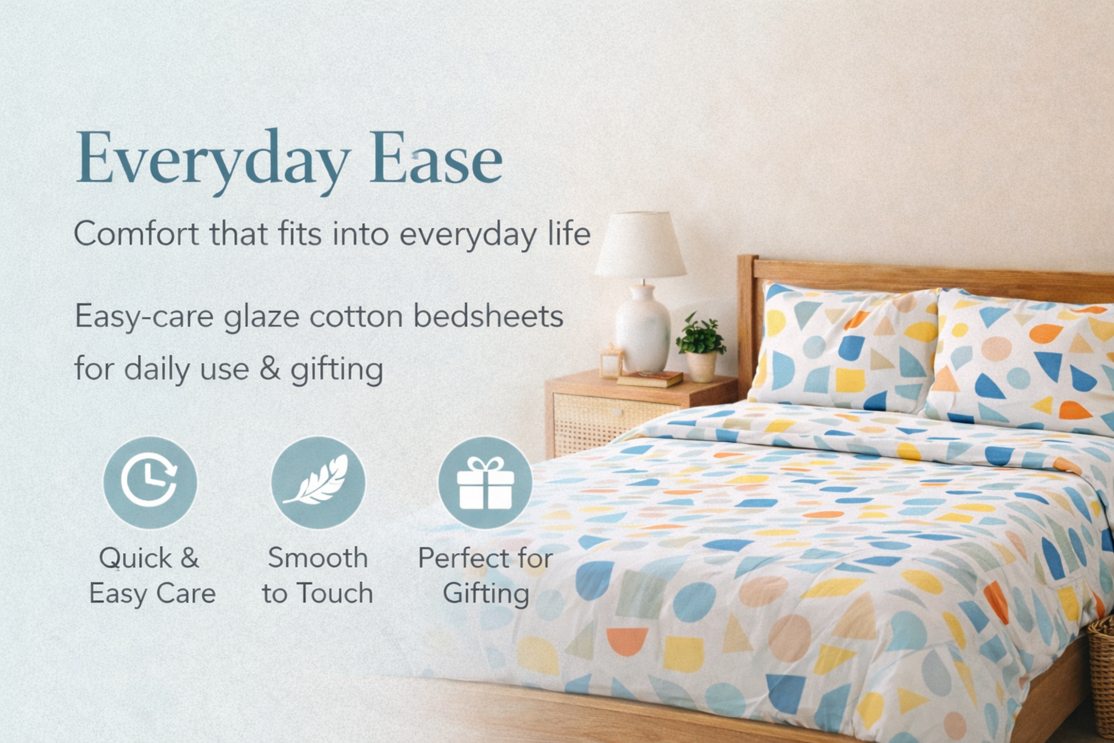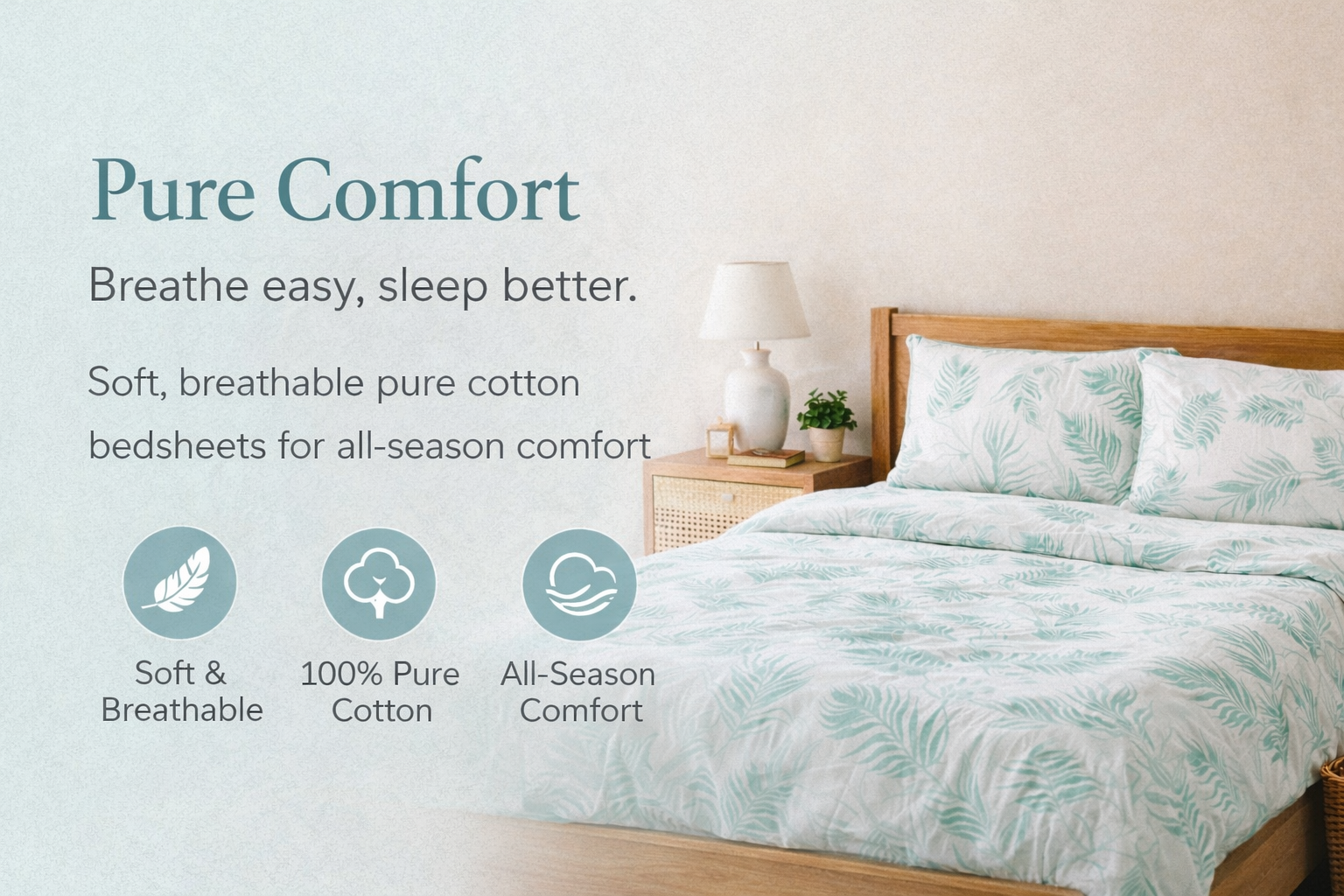 Made from natural cotton fibers that are soft, breathable, and gentle on skin. Perfect for everyday comfort and a cool, relaxing sleep experience.