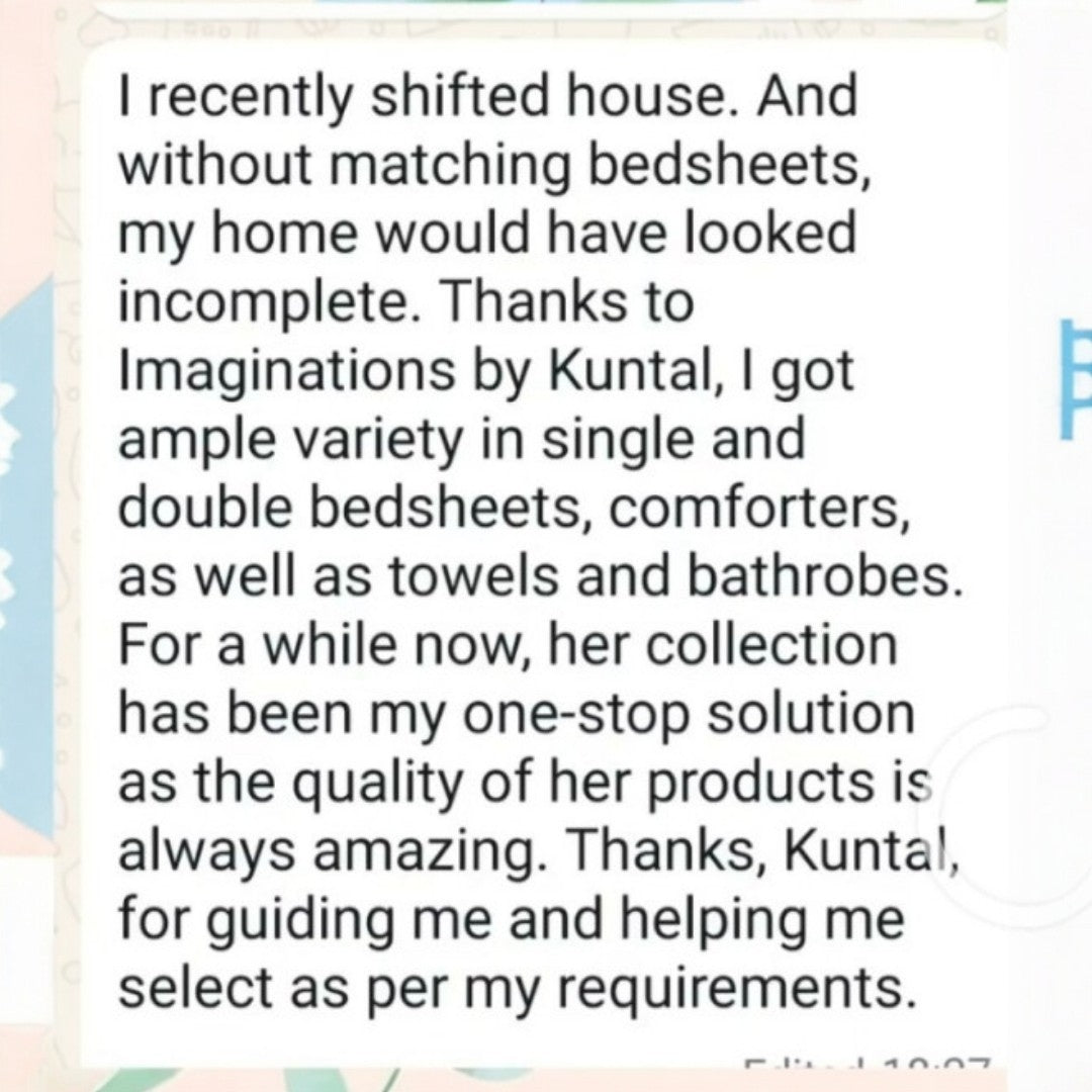 I’m Kuntal Nagrecha, a mom-preneur who built Imaginations by Kuntal by following her passion. What started as a dream is now a carefully curated bed and bath linen brand designed for comfort-loving homes.