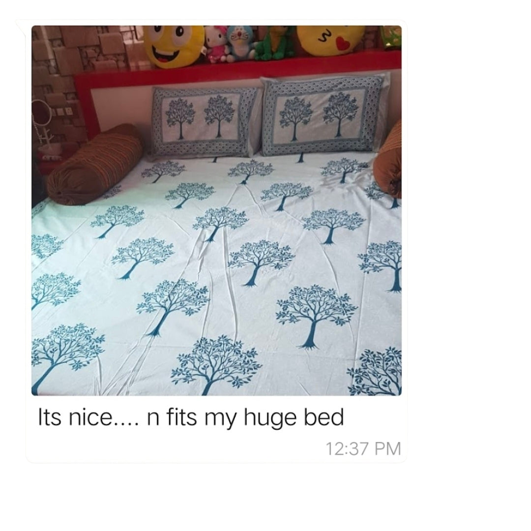 Geometric Queen Pure Cotton Bedsheet — Blue