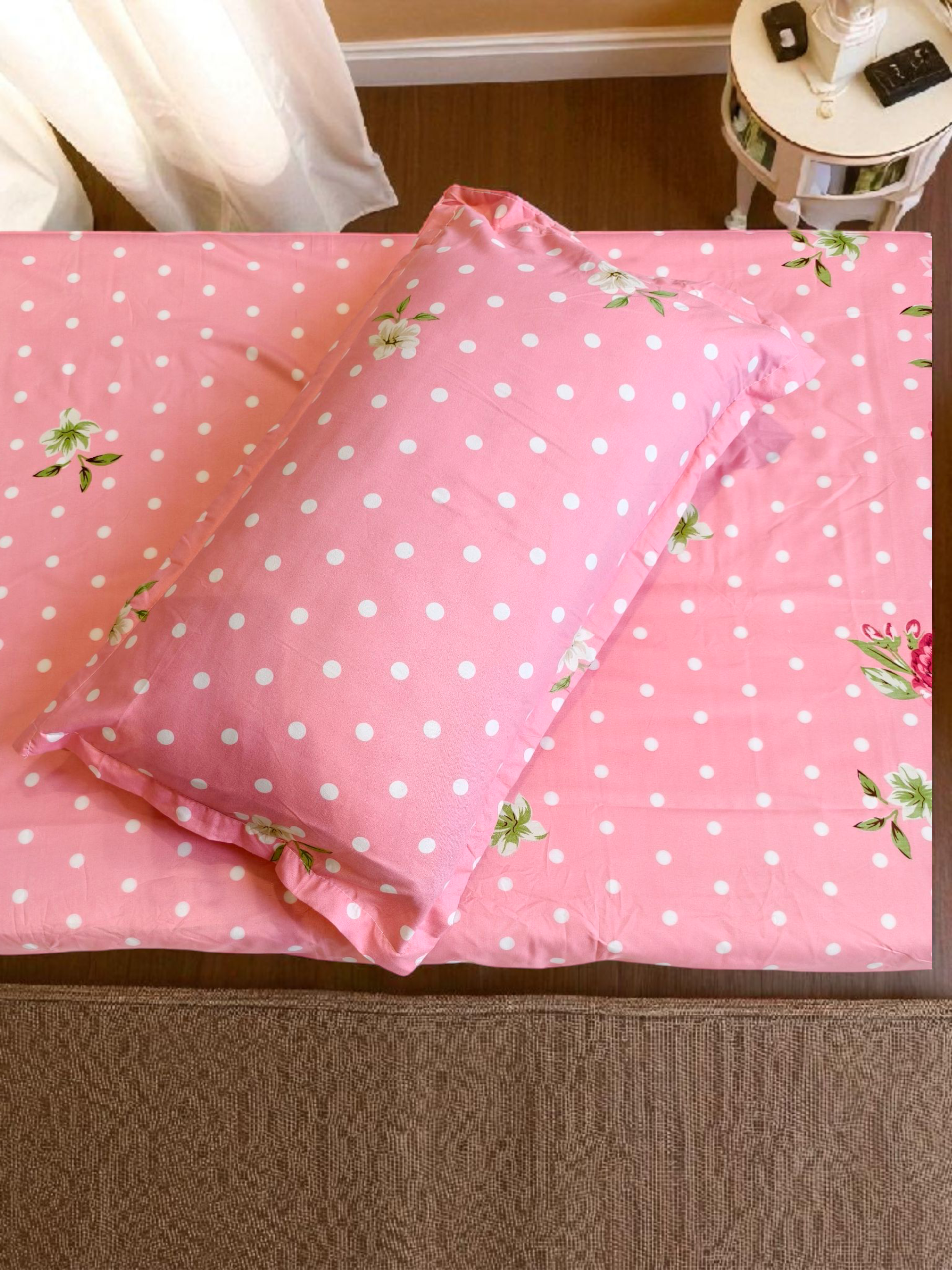 Floral Single Glaze Cotton Bedsheet — Pastel Pink