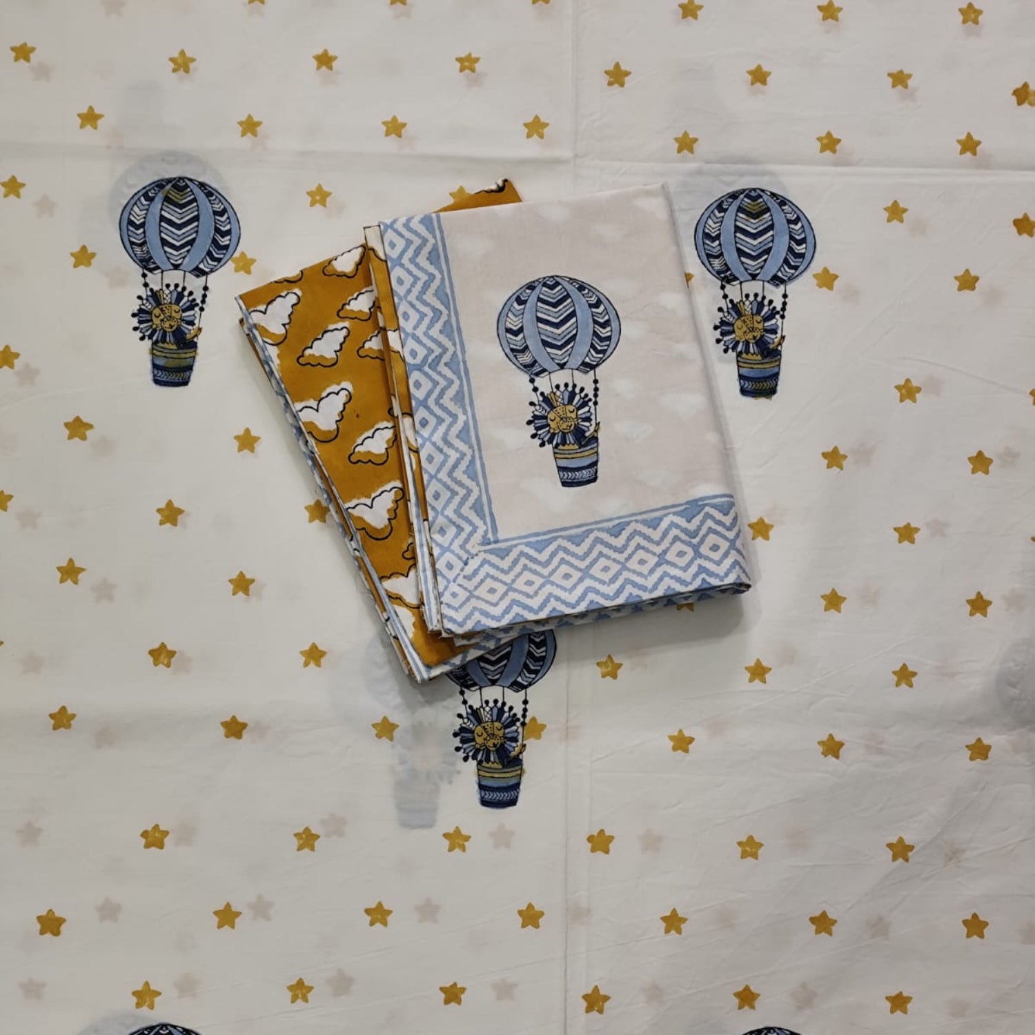 Hot Air Ballon Kids King Pure Cotton Bedsheet- Blue